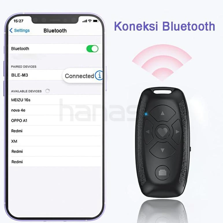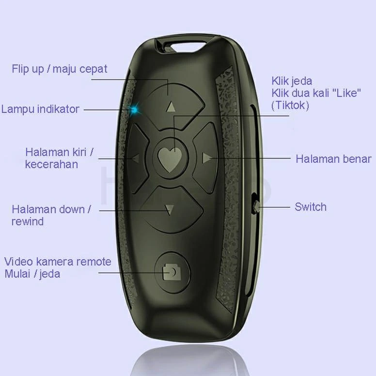 Remote control shuter yang dapat mempermudah Anda dalam pengambilan gambar atau video tanpa menyentuhnya. Didukung Bluetooth 4.0 membuatnya stabil menghasilkan kualitas foto atau video terbaik