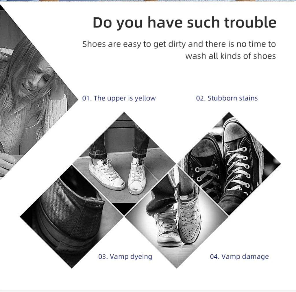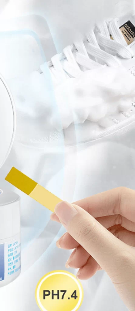 Diformulasikan agar aman, tidak asam dan tidak basa. Tidak akan menyebabkan kerusakan pada sepatu, tetapi juga lebih memperhatikan kesehatan tangan: hindari pencucian basa, efektif hindari hilangnya warna bagian atas tekstil, deformasi, penuaan dan masalah lainnya.